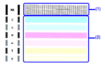 (1) If lines of this pattern are missing, the Black print head nozzle needs cleaning.