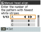 button to select Yes and then press the OK button. The print head alignment pattern is printed.