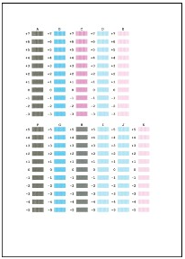 button to input the number of the pattern that has the least noticeable vertical streaks.(3) Repeat the procedure until you finish inputting the pattern number for column K.