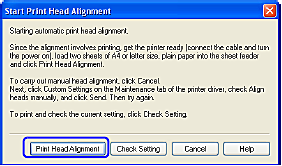 Clicking Check Setting prints the current settings and finishes the print head alignment.