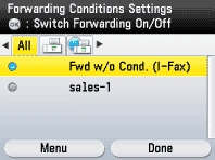 (Scroll Wheel) to select the desired forwarding setting, then press [OK].Each time you press [OK], the icon status displayed on the left side of the condition name is switched.