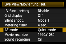 1. Once you have proceeded up to Step 9 of "STEP I. Preparing for Live View Shooting", turn the <Quick Control Dial> to select [AF mode].