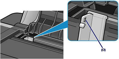 (2) Pinch the Paper Guides (D) on the both sides and slide them to align with the mark of paper size.