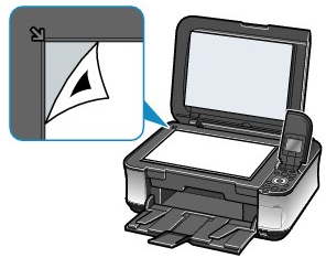 - The print head alignment sheet is placed in the correct position with the printed side facing down.
