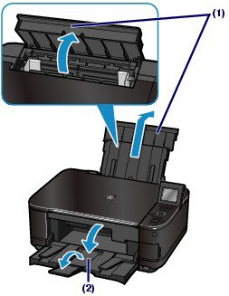 (1) Open the Paper Support, raise it, then tip it back.
