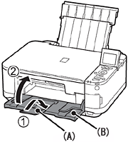 (1) - 2 Close the Paper Output Tray (B).
