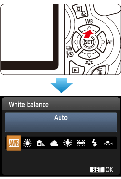 2. When the camera is ready to shoot, press the <WB> button to display the [White Balance] screen.