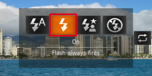 Keep your arms tight against your body while holding the camera firmly by the sides. Be sure that your fingers do not block the <flash>.
