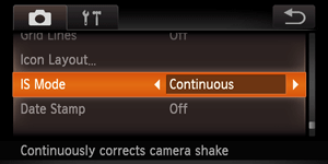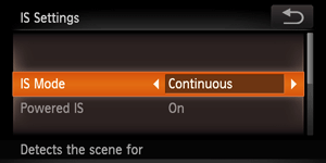 ) > [IS Settings], and then select [Continuous] for the [IS Mode].