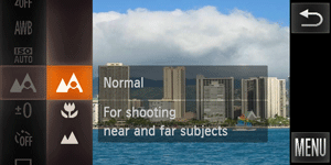 ) will appear), and then the menu up or down to choose the [Focusing Range] that is best suited to your usage environment.