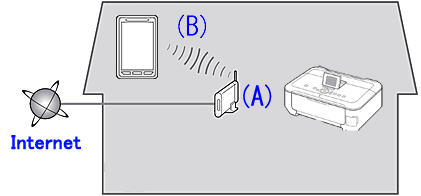 The mobile terminal such as a smartphone communicating with the printer must be connected to the access point or the router. When the mobile terminal is not connected, refer to [ How to perform the wireless LAN setup for the smartphone (iPhone / iPad/iPod touch) ] or [ How to perform the wireless LAN setup for the smartphone (Android) ] within this webpage.