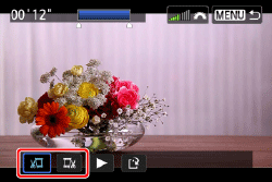 With your camera, you can edit out the first and last scenes of a movie in 1-sec. increments. You can select [Overwrite] to save and overwrite the original movie, or [New file] to save the movie as a new movie. This operation is carried on the movie playback screen.