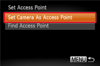 > dial to choose [Set Camera As Access Point], and then press the <FUNC./SET> (
