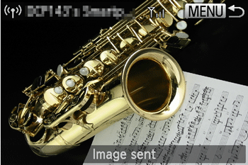 ) button to return to the playback screen. - After sending images to a camera or smartphone, [Image sent] will be displayed, and the display will return to the image transfer screen.