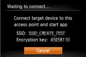 - Once the smartphone is recognized on the camera, the device connection screen will be displayed on the camera.