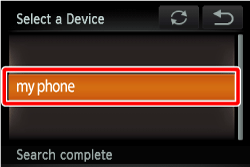 6. Touch the name of the smartphone you installed the CameraWindow app on.