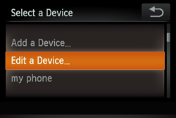 When you have registered multiple smartphones to the camera, the [Edit a Device] screen will be displayed if connection settings are erased. In this case, touch the