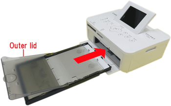 Making sure the outer cover is open, insert the paper cassette all the way into the compartment.