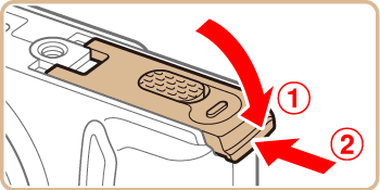 Opening and closing the memory card/battery cover (PowerShot SX700 HS)