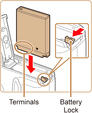 If you insert the battery facing the wrong way, it cannot be locked into the correct position. Always confirm that the battery is facing the right way and locks when inserted.