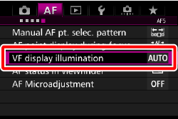 In the <P / Tv / Av / M / B> shooting modes, you can make illumination settings for the AF points and grid in the viewfinder.