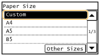 Uncheckmarked paper sizes are displayed in the <Other Sizes> screen.