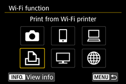 - For more information about settings, refer to "Printing Images Using a Wi-Fi Printer" in the Wireless Function Instruction Manual.
