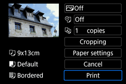 - When printing is completed, the screen for step 1 will reappear. To print another image, repeat steps 1 to 3.