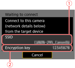 - In camera access point mode, when connecting by selecting [Easy connection], "_Canon0A" is displayed at the end of the SSID.