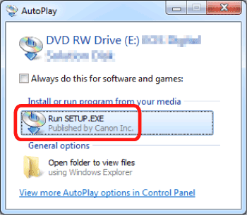 When the following screen is shown, click [Run SETUP.EXE].
