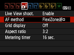 ] tab, select [AF method].- In Basic Zone modes, it is under the [