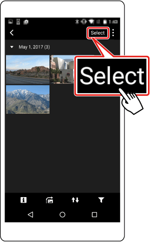 When a list of images in the camera appears on the smartphone, tap [ Select ] on the upper right of screen.