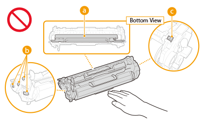 *Even within the storable humidity range, water droplets (condensation) may develop inside the toner cartridge or the drum cartridge if there is a difference of temperature inside and outside the toner cartridge or the drum cartridge. Condensation will adversely affect the print quality of toner cartridges or drum cartridges.