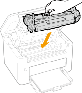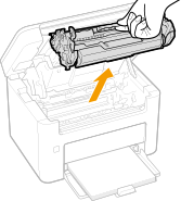 Do not shake or tilt the drum cartridge. Also, make sure to avoid applying shocks to the drum cartridge, such as by hitting it against something. Doing so may cause the toner left in the drum cartridge to leak. Remove the drum cartridge gently at the same angle as the slot.