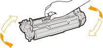 4. Shake the drum cartridge 5 or 6 times as shown below to evenly distribute the toner inside the drum cartridge, and then place it on a flat surface.