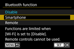 < Connecting to a Smartphone via Wi-Fi from the [Wi-Fi function] Menu >