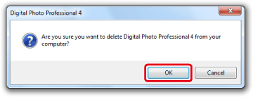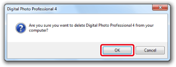3. When the following dialog box appears, click [OK] to start uninstalling Digital Photo Professional Ver.4.x.