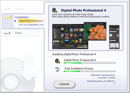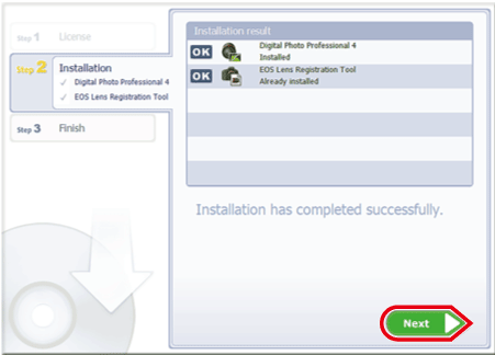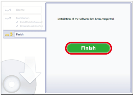 This completes the procedure for re-installing Digital Photo Professional Ver.4.x.