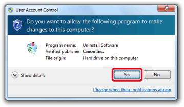 - In some cases, the [User Account Control] screen may appear. In this case, please click [Yes].