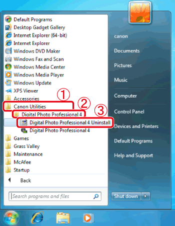 Digital Photo Professional Ver.4.x does not Work Properly / Uninstalling (Deleting) and Re-installing Digital Photo Professional (Windows 7)
