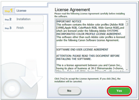 6. Read the license agreement and if you agree to the terms, click [Yes].