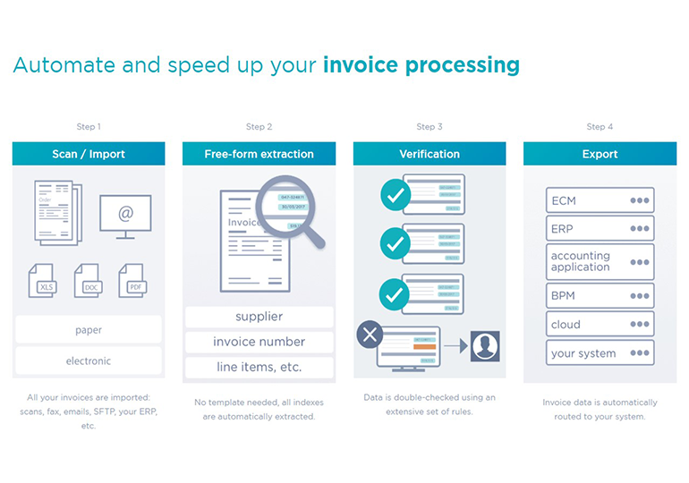 คุณต้องการจัดการระบบบัญชีเพื่อจะได้มีเวลาไปทุ่มเทกับธุรกิจหลักของคุณหรือไม่? โปรดเรียนรู้เกี่ยวกับ โซลูชั่นการจับข้อมูลบัญชีเจ้าหนี้ (Accounts Payable Capture Solution) และเริ่มทำงานอย่างมีประสิทธิภาพมากขึ้นกว่าเดิม โซลูชั่นนี้จะทำการจับข้อมูลบนใบแจ้งหนี้โดยอัตโนมัติ จำกัดข้อผิดพลาดจากการทำงานด้วยมนุษย์ และลดต้นทุนการป้อนข้อมูลได้มากถึง 80%
