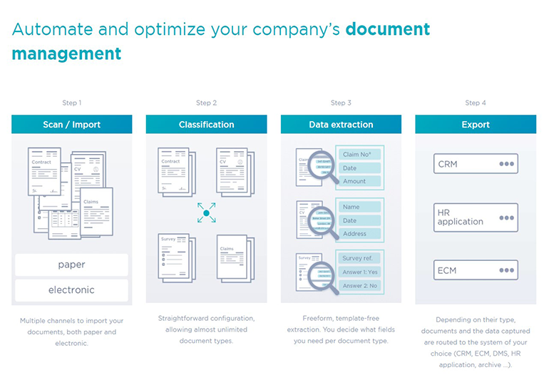 ผู้คนในทุกวันนี้ต่างสนใจเกี่ยวกับการเปลี่ยนผ่านองค์กรให้มีการทำงานแบบดิจิทัลมากขึ้น ซึ่งส่วนสำคัญของกลยุทธ์นี้คือการปรับกระบวนการจัดการต่างๆ ให้มีความเหมาะสมที่สุด เช่น การประมวลผลใบแจ้งหนี้ การประมวลผลใบสั่งซื้อ การประมวลผลรูปแบบ ระบบอัตโนมัติสำหรับจัดการห้องรับเอกสารดิจิทัล และการแปลงเอกสาร ซอฟต์แวร์การจัดการข้อมูล IRISXtract™ ของเราจะช่วยให้ถ่ายโอนข้อมูลที่เกี่ยวข้องไปยังแอปพลิเคชันกระบวนการทางธุรกิจได้อย่างรวดเร็วและมีประสิทธิภาพมากกว่าการประมวลผลแบบแมนนวล นั่นคือโซลูชั่นของเราจะเปลี่ยนการประมวลผลด้วยตนเองไปเป็นแบบอัตโนมัติที่มีคุณภาพสูงสุดสำหรับทุกเอกสารและทุกกระบวนการ
