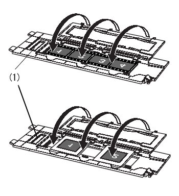 - Do not block the calibration slot (1) on the Film Guide when you are scanning film. Colors will not be scanned correctly if the calibration slot is obstructed.