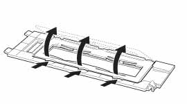 When curled film is scanned, extra light will enter through any gaps and produce bands of color around the edges of the scanned image. If this occurs, use the supplied shield to hold down the film and block the light as shown in the figure.