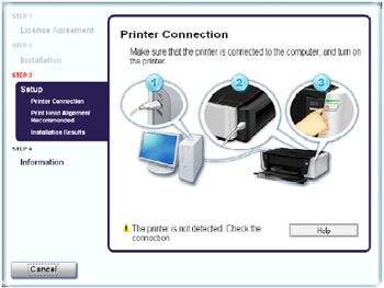 If you were unable to proceed beyond the Printer Connection screen, follow the procedure below to reinstall the printer driver.