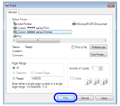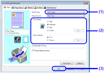 - Depending on your application program, operations may differ. For details, refer to the instruction manual of your application.The steps described in this section are for printing in Windows Vista.