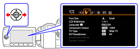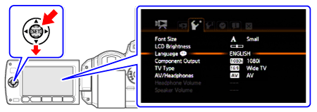 > that appear in some menu screens refer to the name of buttons on the camcorder and will not change, regardless of the language selected.