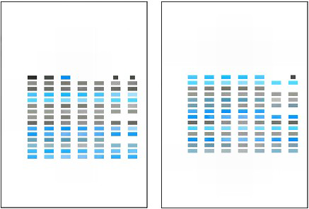 - The print head alignment pattern is printed in black and blue only.