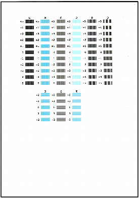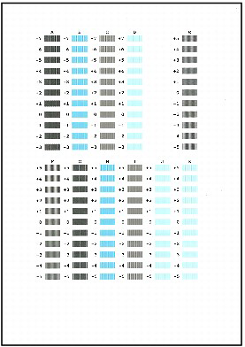 - The print head alignment pattern is printed in black and blue.
